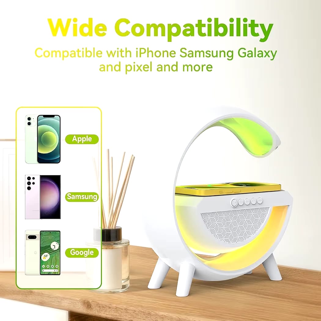 G Speaker Lamp - APP Control 3 in 1 Multi-Function Bluetooth Speaker with Wireless Fast Charging, RGB Light and Sunrise Alarm Clock for Bedroom & Bedside Table Wireless Charger Lamp